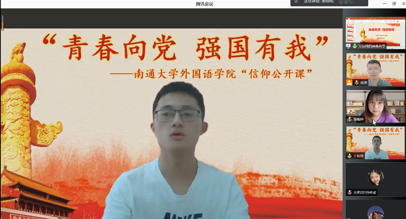 活动围绕战“疫”故事和“返家乡”社会实践两个主题展开,学院暑期社会实践学生代表线上分享了实践经历与心得体会。英语师范192班谢佳宁、英语师范194班严逸、商务英语201班王晟和翻译201班孙龙飞作为疫情防控志愿者代表分别讲述了积极投入地方抗疫志愿服务,与医护人员并肩战斗的故事。英语师范181班的韦婧与英语师范202班蔡雨婷作为社会实践挂职锻炼代表,分享了自己克服困难,在挂职锻炼中观、学、思、悟的成长经历。活动中,同学们积极互动并纷纷表示,作为新时代的青年大学生,要勇做追梦人,为实现中华民族伟大复兴的中国梦贡献青春力量。
