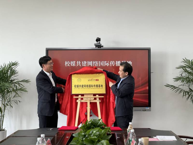 3月29日,我校与中央广播电视总台国际在线江苏频道举行“推动国际传播能力建设座谈会暨校媒共建网络国际传播基地”签约仪式。校党委副书记王卫东、南通市委宣传部副部长周锦南共同为“校媒共建网络国际传播基地”揭牌。校党委常委、宣传部部长陶锋出席仪式。