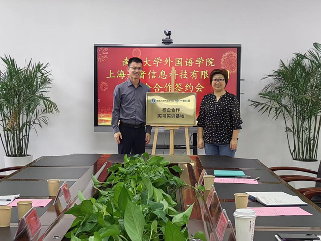 9月18日下午,日漫 与上海一者信息科技有限公司举行了校企合作签约暨揭牌仪式。日漫 党委书记朱小娟、上海一者信息科技有限公司总经理张井共同为“实习实训基地”揭牌。院长佘军、副院长吕雪峰、副院长王雪玉以及翻译系主任曹雁华参与了此次活动。