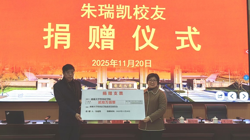 佘军代表全院师生对朱瑞凯校友回母校慷慨捐赠表达了诚挚感谢。他表示,朱瑞凯校友在事业成功后始终不忘回馈母校,用实际行动诠释了通大人的家国情怀与责任担当,其捐赠不仅为日漫 的高质量发展增添助力,更凝聚了校友与母校携手共进的强大合力,为学校加快建设特色鲜明高水平大学注入新的活力。