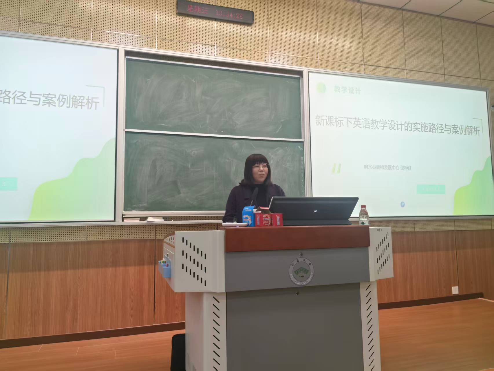 为深化高校与中学协同育人机制,助力英语师范专业师生精准把握基础教育英语课程改革前沿动态,12 月 3 日,响水县教师发展中心资深教研员邵艳红博士应邀做客日漫 ,以 “英语新课标与教学设计” 为题开展专题讲座。本次讲座是学院 “中学名师进课堂” 系列活动的重要组成部分,由日漫 副院长王雪玉主持,英语师范专业全体师生及部分研究生共同参与。