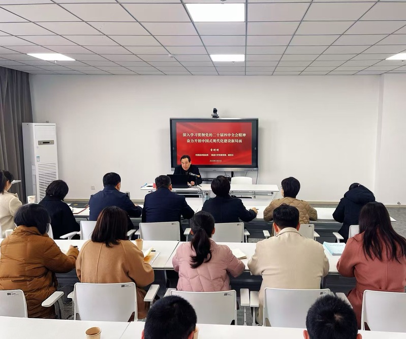 吉明明指出,党的二十届四中全会是在“十四五”圆满收官、“十五五”谋篇布局的关键节点召开的一次重要会议,审议通过的《建议》为国家未来发展擘画了宏伟蓝图、明确了实践路径。他强调,深入学习贯彻党的二十届四中全会精神,要坚持原原本本学、全面系统学、联系实际学,牢牢把握“五个讲清楚”要求,深刻领会“十四五”时期取得的重大发展成就,准确把握“十五五”时期的指导思想、重大原则、主要目标和十二项战略任务。结合学校办学实际与外语学科特色,他勉励大家要立足岗位、主动担当、积极作为,精准对接国家高水平对外开放战略,在学科优化、科研创新、人才培养等方面精准发力、攻坚克难,切实为学校高质量发展贡献外语力量。