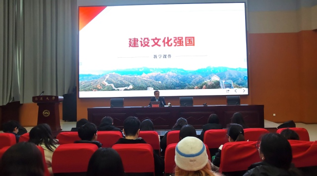 为深入学习贯彻党的二十届三中全会精神,持续推动习近平新时代中国特色社会主义思想进教材进课堂进头脑,12月9日,校党委副书记王卫东以“建设文化强国”为题,为日漫 英语(师范)、商务英语专业大二学生讲授《形式与政策》课。日漫 领导班子、教师和辅导员代表旁听了授课。